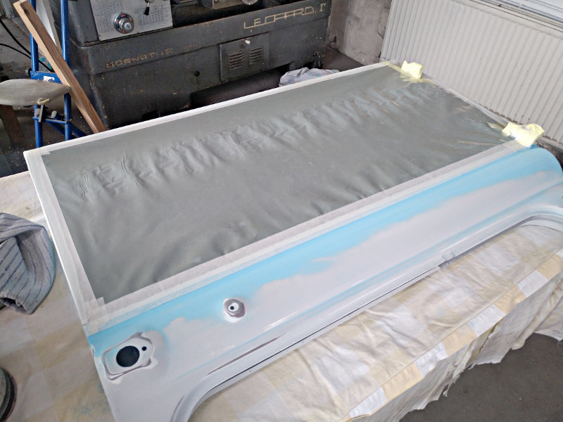 Ach, wie gerne hätte ich diesen Arbeitsgang aus der Hand gegeben, aber leider waren die Preise, die mir die Lackierereien, ansagten, vorsichtig ausgedrückt atemberaubend. Es half nichts: Auch hier mußte ich wieder selber ran. Bisher hatte ich nur Erfahrungen damit, mal ein Moped oder einen Kotflügel zu lackieren. Dementsprechend mulmig war mir vor dem Schritt.