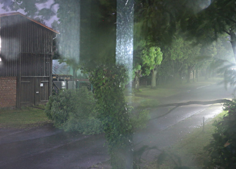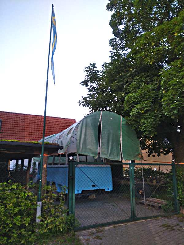 Vorher mußte mir allerdings das Wetter noch einen Strich durch die Rechnung machen. Wochenlang war Dürre und Hitze, so daß der Bus bis in die letzte Ritze schön duchgetrocknet war. Alles hatte ich sorgfältig angeschliffen, abgestaubt und quadratzentimeterweise überprüft. Morgen nun sollte der große Tag sein. Irrtum: In der Nacht tobte sich ein extremes Gewitter aus, das den Regen nur so durch das Zelt und den Bus hindurchpeitschte. Auf der Straßenseite gegenüber brach sogar ein Baum um. Also verbrachte ich den Tag damit, alles wieder sauber zu machen und sämtliche Ritzen und Kanten trockenzufönen. Dann eben morgen? Nein, vergiß es: In der folgenden Nacht gab es nochmal das gleiche Schauspiel. Scheiße. Nochmal von vorn und die Aktion konnte dann im dritten Anlauf endlich starten.