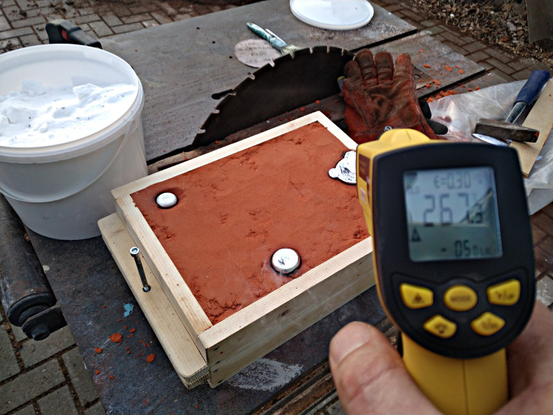 Zum Bau der Form griff ich auf einen industriell hergestellten Ölsand zurück, der für entsprechend hohe Temperaturen ausgelegt ist. Mit wasserbasierten Formsanden habe ich in der Vergangenheit keine so guten Erfahrungen gesammelt, weil es wirklich aufwändig ist, die Sache zu 100% trocken zu bekommen. Bleiben Wasserreste übrig, verdampfen sie in der Form und sorgen so für Lunker oder im schlimmsten Falle fliegt sogar alles auseinander.